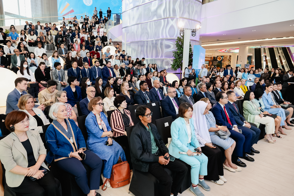 นางมิเกลล่า ฟิลแบรย์-สตอเร่ ผู้แทนเลขาธิการสหประชาชาติประจำประเทศไทย กล่าวชื่นชมถึงบทบาทและความมุ่งมั่นของประเทศไทยที่เป็นแบบอย่างในการขับเคลื่อนการพัฒนาอย่างยั่งยืน ทั้งในประเทศและในระดับภูมิภาคว่า “ความก้าวหน้าของประเทศไทยในการขับเคลื่อนเป้าหมายการพัฒนาที่ยั่งยืน ล้วนมาจากความมุ่งมั่นและความเข้มแข็งของผู้คนในประเทศนี้ เรื่องราวนิทรรศการเฉลิมฉลอง 80 ปี สหประชาชาติ ‘30 Stories, 17 Goals, One Road to 2030’ สะท้อนให้เห็นถึงเจตนารมณ์นั้นอย่างชัดเจน รวมถึงพลังแห่งความร่วมมือ เมื่อ ‘เราทุกคน’ ร่วมลงมือเพื่อสร้างการเปลี่ยนแปลง เพื่อผู้คน เพื่อสังคม และเพื่ออนาคตร่วมกัน”