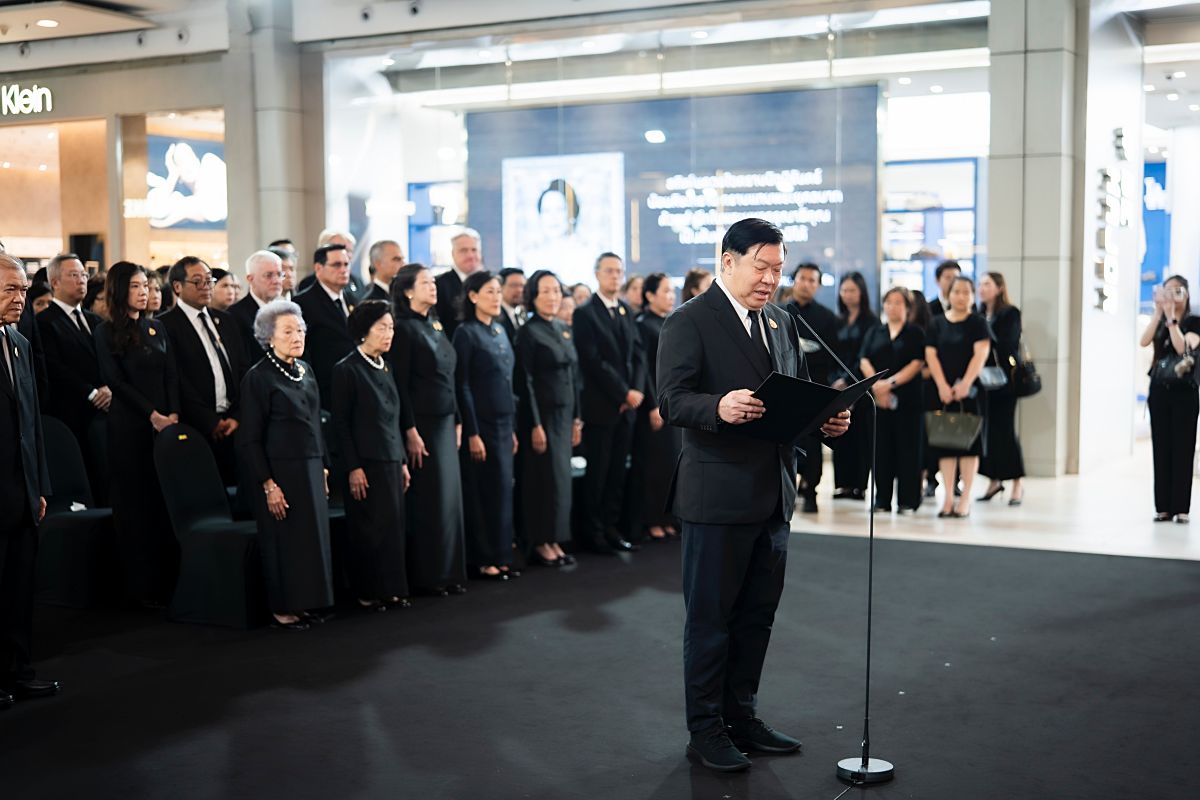 พิธีถวายความอาลัยจัดขึ้น ณ ลานอีเดน ชั้น 1 ศูนย์การค้าเซ็นทรัลเวิลด์ โดยมี คุณมุกดา จิราธิวัฒน์ ประธานในพิธี พร้อมด้วยดร.ศุภชัย พานิชภักดิ์ และคุณพิชัย จิราธิวัฒน์ นำกล่าวน้อมถวายความอาลัย พร้อมเชิญผู้ร่วมพิธียืนสงบนิ่งเป็นเวลา 93 วินาที เพื่อรำลึกถึงพระมหากรุณาธิคุณอย่างหาที่สุดมิได้ จากนั้นประธานในพิธีและคณะผู้บริหารได้วางพวงมาลัยถวายความอาลัย ตามด้วยพนักงานกลุ่มเซ็นทรัลจากทุกหน่วยงานร่วมวางดอกมะลิ บริเวณเบื้องหน้าพระฉายาลักษณ์เพื่อแสดงความอาลัยอย่างสุดซึ้งและน้อมสำนึกในพระมหากรุณาธิคุณอันหาที่สุดมิได้