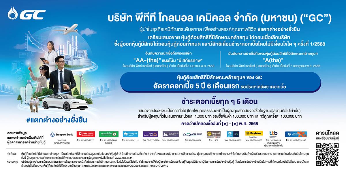 ทั้งนี้ ตลอดทั้งปี 2568 ที่ผ่านมา GC ได้ดำเนินการแผนลดภาระทางการเงินอย่างต่อเนื่อง ซึ่งประกอบด้วยการออกหุ้นกู้ด้อยสิทธิที่มีลักษณะคล้ายทุนสกุลเงินเหรียญสหรัฐฯ การดำเนินการ Asset Monetization เพื่อเพิ่มประสิทธิภาพการบริหารสินทรัพย์ และขับเคลื่อน Holistic Optimization เพื่อเพิ่มประสิทธิภาพการดำเนินงาน รวมถึงการเตรียมออกหุ้นกู้ด้อยสิทธิที่มีลักษณะคล้ายทุนฯ สกุลเงินบาท เพื่อเสริมสร้างความแข็งแกร่งทางการเงินและรักษาอันดับความน่าเชื่อถือให้ธุรกิจ ตามโรดแมปการบริหารเงินทุนระยะยาวที่ GC วางไว้อย่างมีระบบ