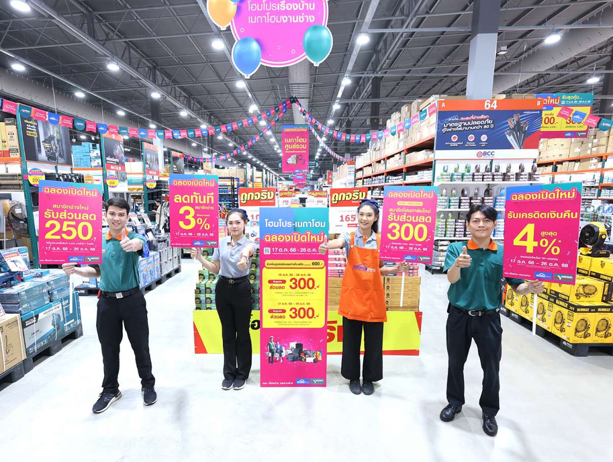ช้อปวันเปิดบ้านสาย 4! ฉลองเปิดให้บริการ “โฮมโปร x เมกาโฮม พุทธมณฑลสาย 4” เต็มรูปแบบ 17 ตุลาคม 2568 พบกับความคุ้มค่าและความสนุกตั้งแต่วันแรก 17 ต.ค. วันเดียวเท่านั้น ถึงก่อน มีสิทธิ์ก่อน! สมาชิกโฮมการ์ดและสมาชิกช่าง เพียงตอบคำถามสั้นๆ ลุ้นจับคูปองช้อปสินค้าราคาพิเศษจำนวนจำกัด! พร้อมช่วยลดค่าครองชีพให้กับทุกคน ตลอด 3 วันเต็ม 17-19 ต.ค. กับกิจกรรม “ซ่อมฟรี! เครื่องใช้ไฟฟ้า” โดยช่างโฮมโปร #มือโปรประจำบ้านคุณ พร้อมหยิบกลุ่มสินค้าเรื่องบ้านและงานช่างมาลดหนักๆ ราคาเดียว 9,990 บาท! ครบทั้งสินค้าแบรนด์ดังและไอเทมยอดนิยมหลากหลาย รวมถึงสิทธิพิเศษ แจกเยอะให้หลายต่อ ทั้งคูปอง ส่วนลด เครดิตเงินคืน และโปรโมชันจากบัตรเครดิต ต่อเนื่องถึง 26 ตุลาคม 2568 นี้!