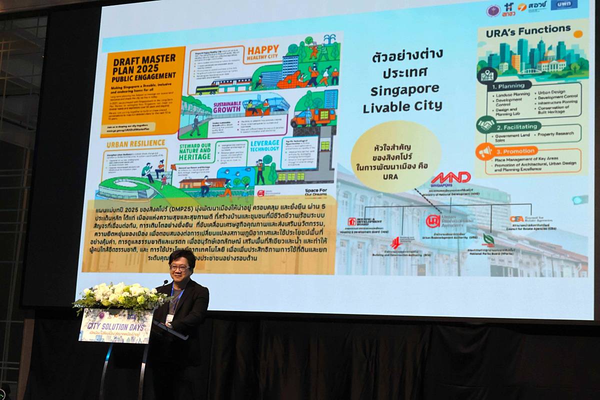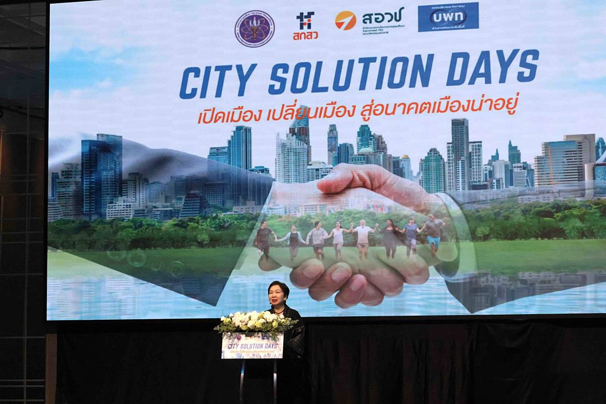 ดร.สีลาภรณ์ บัวสาย ที่ปรึกษาวิทยสถาน “ธัชภูมิ” เพื่อการพัฒนาพื้นที่ หน่วยบริหารและจัดการทุนด้านการพัฒนาระดับพื้นที่ (บพท.) กล่าวถึงการจัดงาน City Solution Days “เปิดเมือง เปลี่ยนเมือง สู่อนาคตเมืองน่าอยู่”ว่า เป็นเวทีสำคัญที่สะท้อนถึงบทบาทและภารกิจของ บพท. .ในมิติของการขับเคลื่อนงานเชิงระบบและกลไกด้านการพัฒนาเชิงพื้นที่ ซึ่งเปิดโอกาสให้ทุกภาคส่วน ทั้งผู้นำเมือง เทศบาลนครและเทศบาลเมือง ผู้แทนหน่วยงานภาครัฐและเอกชน ประชาคมเครือข่ายนักวิจัย นักวิชาการ และผู้เกี่ยวพันกับการแก้ไขปัญหาเมือง ให้เข้ามามีส่วนร่วมในการกำหนดทิศทางและตอบโจทย์ด้านการพัฒนาเมืองที่สอดคล้องกับบริบทของพื้นที่ ตรงตามความต้องการของประชาชนในการยกระดับคุณภาพชีวิต ด้วยชุดความรู้งานวิจัย และต่อยอดการนำองค์ความรู้ไปใช้ประโยชน์จริงในเชิงพื้นที่ อันจะมีผลต่อการเปลี่ยนแปลงของเมืองในทุกมิติ