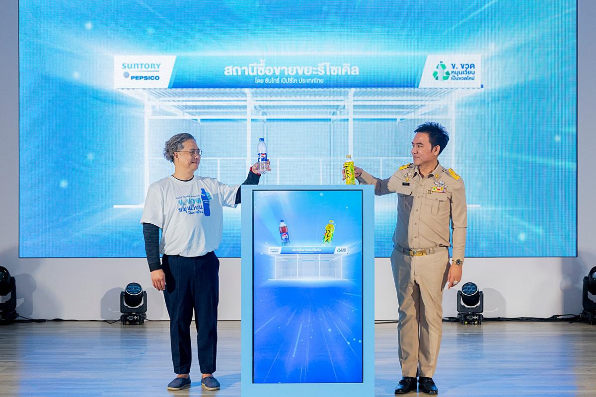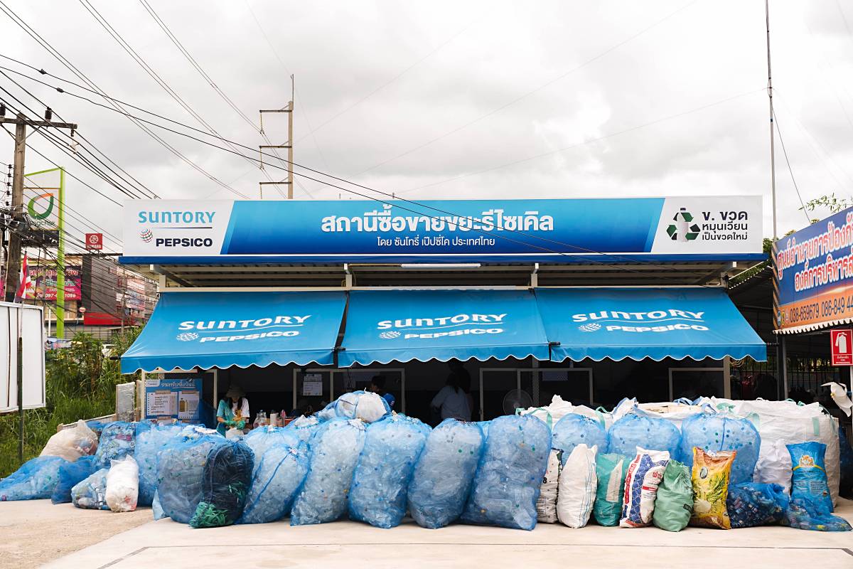 บริษัท ซันโทรี่ เป๊ปซี่โค เบเวอเรจ (ประเทศไทย) จำกัด ผู้ผลิตและจัดจำหน่ายเครื่องดื่มภายใต้ตราสินค้าของซันโทรี่และเป๊ปซี่โคในประเทศไทย วางเป้าหมายสำคัญในการขับเคลื่อนโมเดล ‘สถานีซื้อขายขยะรีไซเคิล’ ผ่าน 3 มิติ สำคัญ คือ 1. มุ่ง ‘ลด’ ปริมาณขยะไปสู่หลุมฝังกลบ 2. ‘เพิ่ม‘ ปริมาณและคุณภาพของขยะรีไซเคิลให้กลับเข้าสู่ระบบ โดยเฉพาะขวดพลาสติก PET ใส ไม่มีสี และ 3. ‘สร้าง‘ รายได้จากการคัดแยกและซื้อขายขยะหมุนเวียนในชุมชน พร้อมปลูกฝังพฤติกรรมการคัดแยกขยะตั้งแต่ต้นทางแก่เยาวชนในพื้นที่ เพื่อผลักดันให้เกิดการจัดการขยะรีไซเคิลอย่างมีประสิทธิภาพและยั่งยืน