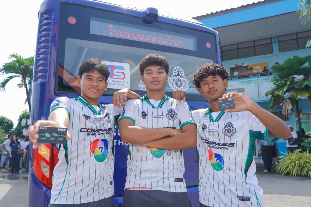 คุณกุลพรภัสร์ วงศ์มาจารภิญญา ประธานเจ้าหน้าที่บริหาร บริษัท ไทย สมายล์ บัส จำกัด (TSB) เดินทางไปยังโรงเรียนหมอนทองวิทยา อำเภอบางน้ำเปรี้ยว จังหวัดฉะเชิงเทรา เพื่อส่งมอบ รถบัสพลังงานไฟฟ้า EV 100% ให้แก่โรงเรียน โดยมี ผอ. ใย ยศยิ่ง ผู้อำนวยการโรงเรียน พร้อมคณะครู โค้ช และนักเตะทีมฟุตบอลโรงเรียน เป็นตัวแทนรับมอบ
