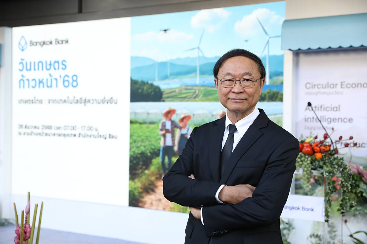 นายพิเชฐ ดุรงคเวโรจน์ กรรมการบริหาร ธนาคารกรุงเทพ จำกัด (มหาชน) กล่าวว่า ธนาคารกรุงเทพ มุ่งมั่นสนับสนุน และผลักดันภาคการเกษตรไทยอย่างต่อเนื่องตลอดระยะเวลากว่า 81 ปี ซึ่งงานมหกรรมจำหน่ายสินค้า วันเกษตรก้าวหน้า’ 68 นี้ จัดขึ้นน็นคร้ง้เพื่อยืนยันเจตนารมณ์ของธนาคารที่จะเป็น “เพื่อนคู่คิด มิตรคู่บ้าน” สนับสนุนและอยู่เคียงข้างให้เกษตรกรไทยสามารถพัฒนาอย่างยั่งยืน พร้อมทั้งเปิดโอกาสให้ภาคเกษตรไทยได้ก้าวสู่เวทีโลกอย่างมั่นคง ด้วยองค์ความรู้ที่ทันสมัย โดยให้ความสำคัญกับประเด็น การเพิ่มผลผลิตและลดความเสี่ยงด้วยเกษตรแม่นยำ (Precision Agriculture) ซึ่งสามารถช่วยลดต้นทุนปุ๋ยและยาได้ 15–40% และเพิ่มผลผลิตได้ถึง 10–30%