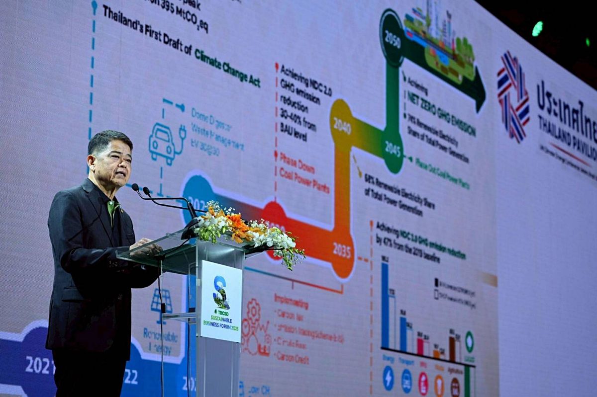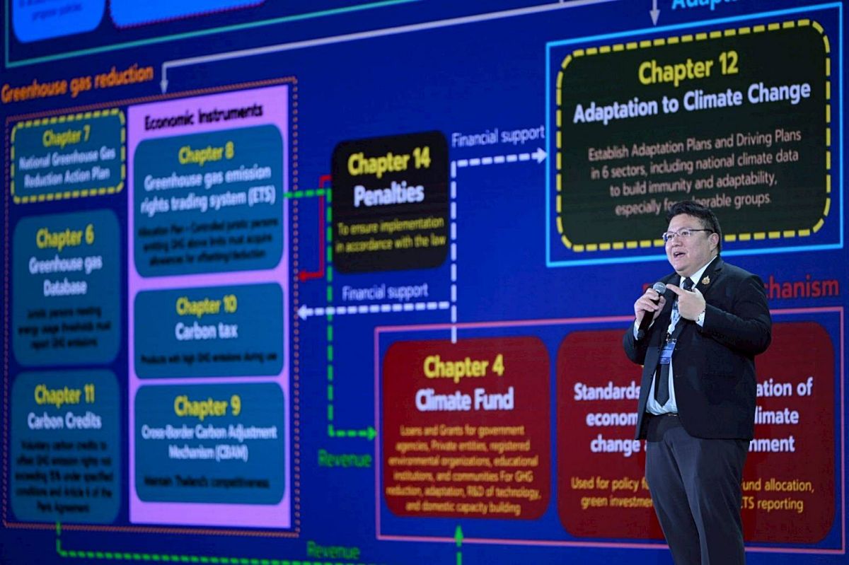 ดร. กิตติศักดิ์ พฤกษ์กานนท์ ผู้แทนกรมการเปลี่ยนแปลงสภาพภูมิอากาศและสิ่งแวดล้อม กล่าวว่า การที่ ครม. ได้ผ่านร่างพระราชบัญญัติการเปลี่ยนแปลงสภาพภูมิอากาศ ทำให้ประเทศไทยมีเครื่องมือในการประกอบธุรกิจยุคใหม่ ที่สอดคล้องไปกับทั่วโลก ประกอบกับการขยับเป้าหมาย Net Zero 2050 ซึ่งไวขึ้น 15 ปี ทำให้ภาคธุรกิจและประชาชนต้องตื่นตัว และมีการวางแผนในการลงทุน โดยเฉพาะการปรับเปลี่ยนด้านเทคโนโลยีหรือการสร้างนวัตกรรม รวมทั้งการปรับพฤติกรรมในการทำงานหรือการประกอบธุรกิจให้สอดคล้องไปกับความเสี่ยงด้านสภาพภูมิอากาศที่จะเกิดขึ้นในอนาคต
