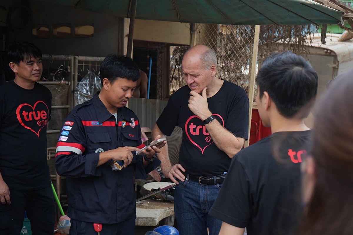 ล่าสุด นายซิกเว่ เบรกเก้ ประธานคณะผู้บริหารกลุ่ม บมจ. ทรู คอร์ปอเรชั่น นำทีมคณะผู้บริหารและเพื่อนพนักงานลงพื้นที่อ.หาดใหญ่ จ.สงขลา เพื่อติดตามสถานการณ์จริง และรับฟังความต้องการจากผู้ได้รับผลกระทบโดยตรง เพื่อให้การช่วยเหลือเป็นไปอย่างตรงจุด และตอบโจทย์คำถามสำคัญว่า “เราจะทำอย่างไรให้ทุกคนกลับมาใช้ชีวิตได้ปกติโดยเร็วที่สุด”