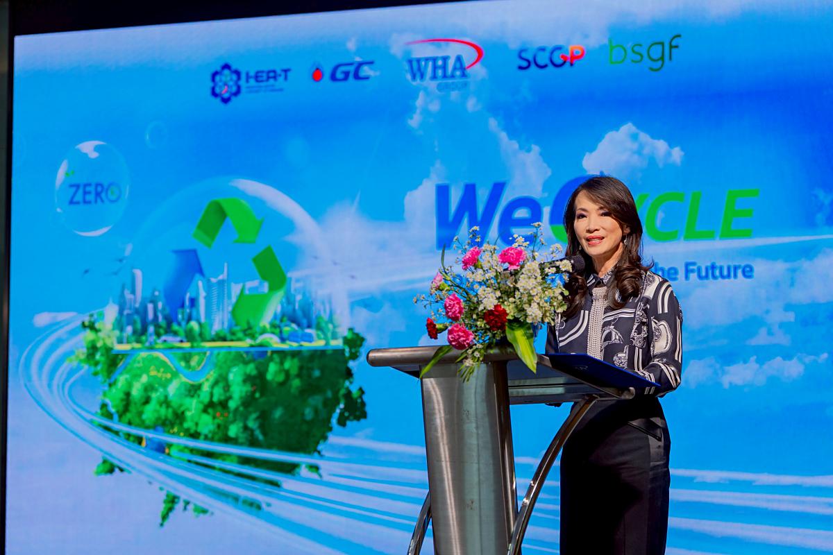 คุณจรีพร จารุกรสกุล ประธานคณะกรรมการบริหาร และประธานเจ้าหน้าที่บริหารกลุ่ม บริษัท ดับบลิวเอชเอ คอร์ปอเรชั่น จำกัด (มหาชน)(WHA Group) ผู้นำด้านโลจิสติกส์ นิคมอุตสาหกรรม สาธารณูปโภคและพลังงาน ดิจิทัลแพลตฟอร์ม และโมบิลิตี้ครบวงจรให้เกียรติเป็นประธานพร้อมนำการจัดงานใหญ่ด้านความยั่งยืนประจำปี “WeCYCLE Day – Together, We Shape the Future”