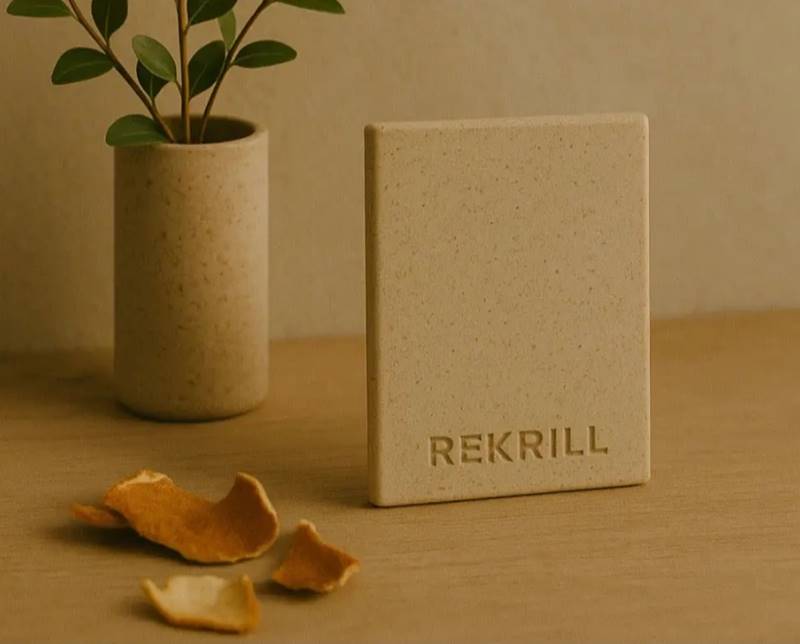 Krill Design สตาร์ทอัพสัญชาติอิตาลี ที่ใช้ไอเดียเปลี่ยนขยะอาหาร เป็นผลิตภัณฑ์สุดเก๋ จากการพัฒนา ReKrill ไบโอโพลิเมอร์ วัสดุทดแทนพลาสติกจากปิโตรเลียมโพลีโพรพิลีน (PP) และอะคริโลไนไตรล์-บิวทาไดอีน-สไตรีน (ABS) ลดคาร์บอนมากถึง 67% เมื่อเทียบกับพลาสติกทั่วไป สามารถย่อยสลายได้ และไม่ก่อให้เกิดไมโครพลาสติก ด้วยเอกลักษณ์เฉพาะตัวของ ReKrill ทำให้สามารถขึ้นรูปเป็นผลิตภัณฑ์ได้หลากหลายไม่ว่าจะเป็นบรรจุภัณฑ์ หรือ ของตกแต่งบ้าน ด้วยจุดแข็งที่ใกล้เคียงกับพลาสติกแบบดั้งเดิม สามารถเข้ากับเครื่องจักรที่มีในปัจจุบัน ทำให้สามารถฉีดขึ้นรูป การขึ้นรูปแบบหมุน หรือ การพิมพ์ 3 มิติ ได้โดยไม่ต้องลงทุนใหม่ นอกจากนี้ ReKrill ยังได้รับการจดสิทธิบัตรเรียบร้อยแล้ว