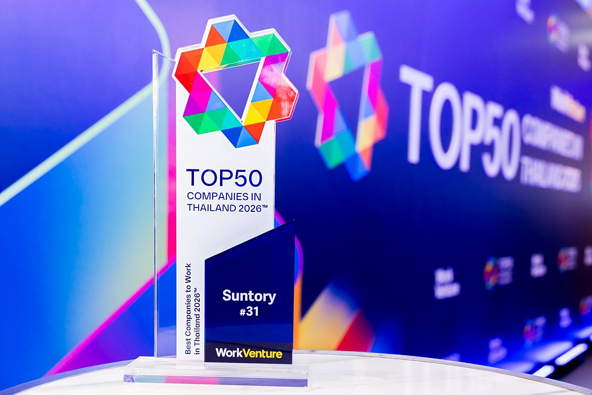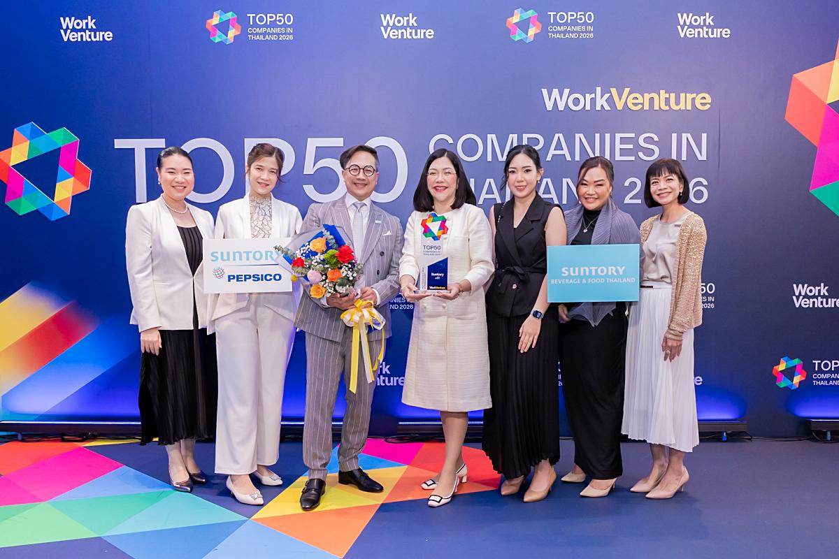 บริษัท ซันโทรี่ เบเวอเรจ แอนด์ ฟู้ด (ประเทศไทย) จำกัด ผู้นำตลาดอาหารเสริมสุขภาพภายใต้ตราผลิตภัณฑ์แบรนด์ในประเทศไทยและอินโดไชน่า และ บริษัท ซันโทรี่ เป๊ปซี่โค เบเวอเรจ (ประเทศไทย) จำกัด ผู้ผลิตและจัดจำหน่ายเครื่องดื่มภายใต้แบรนด์สินค้าของซันโทรี่และเป๊ปซี่โคในประเทศไทย คว้ารางวัล Top50 Companies in Thailand 2026 หรือ 50 องค์กรที่คนรุ่นใหม่อยากทำงานด้วยมากที่สุดประจำปี 2569 จาก เวิร์คเวนเจอร์ (WorkVenture)