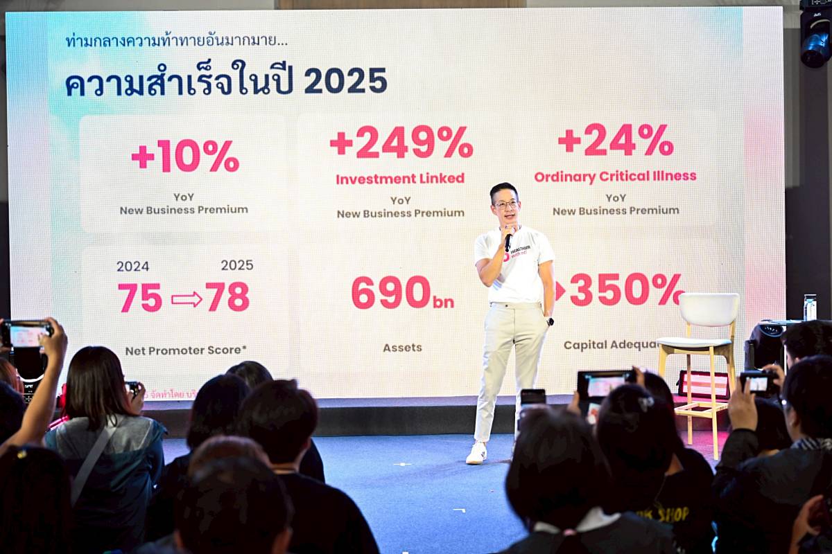 ส่วนการขับเคลื่อนใน 2569 และเป็นการก้าวเข้าสู่ปีที่ 75 เมืองไทยประกันชีวิตจะเดินหน้าด้วยกลยุทธ์ ‘Go Healthier with MTL สุขภาพดีขึ้นไปกว่าเดิม กับเมืองไทยประกันชีวิต’ เพื่อยกระดับการเป็นคู่คิดที่ลูกค้าไว้วางใจทั้งเรื่องชีวิตและสุขภาพขึ้นไปอีกขั้น พร้อมท้ังการดูแลสุขภาพกาย สุขภาพใจ สุขภาพทางการเงินให้ดียิ่งขึ้น ผ่านผลิตภัณฑ์ บริการ ช่องทางการขาย นวัตกรรม พาร์ทเนอร์ และ Health Ecosystem ที่มีความหลากหลาย ตอบโจทย์ทุกไลฟ์สไตล์ในทุกช่วงชีวิตได้อย่างตรงจุด ควบคู่ไปกับนโยบายการดำเนินธุรกิจอย่างยั่งยืนในทุกก้าว ภายใต้การกำกับดูแลกิจการและการบริหารความเสี่ยงที่เหมาะสม โดยคำนึงถึงการสร้างสมดุลทั้งในมิติสิ่งแวดล้อม มิติสังคม และมิติบรรษัทภิบาล