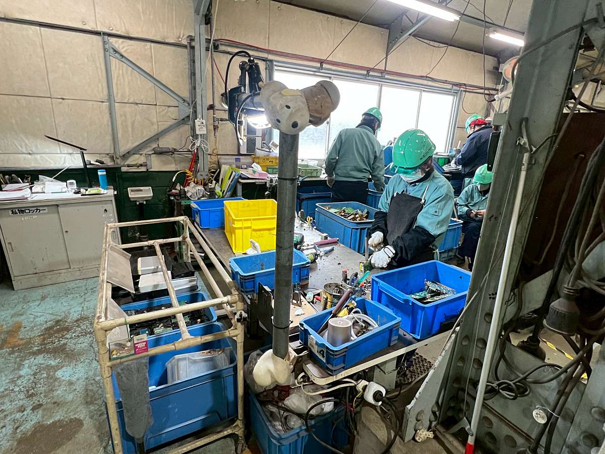 ส่วนกลุ่มที่เป็นโลหะ หรือแผงวงจรต่างๆ ในโทรศัพท์มือถือ จะถูกส่งไปที่ Kosaka Smelting & Refining ซึ่งเป็นโรงงานหลอมชิ้นส่วนของ E-Waste และถลุงเป็นโลหะมีค่าหลายชนิด เช่น ทอง เงิน ทองแดง รวมทั้งแร่ธาตุสำคัญต่างๆ ที่จำเป็นสำหรับภาคอุตสาหกรรมยุคใหม่ ทั้งอุปกรณ์อิเล็กทรอนิกส์ เซมิคอนดักเตอร์ หรือรถยนต์ โดยโรงงานแห่งนี้ นับเป็น 1 ใน 3 ของโลก ที่สามารถสกัดโลหะมีค่าได้มากกว่า 20 ชนิด จากความเชี่ยวชาญเดิมที่เคยทำธุรกิจด้านการทำเหมืองแร่มากว่าร้อยปี