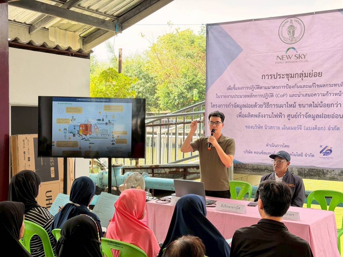 บริษัท นิวสกาย เอ็นเนอร์จี (แบงค็อก) จำกัด เดินหน้าสื่อสารและสร้างการมีส่วนร่วมกับชุมชนอย่างต่อเนื่อง จัดการประชุมกลุ่มย่อยรวม 22 ครั้ง ระหว่างวันที่ 19 กุมภาพันธ์ – 1 มีนาคม 2569 เพื่อชี้แจงการดำเนินงานตามมาตรการป้องกันและแก้ไขผลกระทบสิ่งแวดล้อมในรายงานประมวลหลักการปฏิบัติ (CoP)