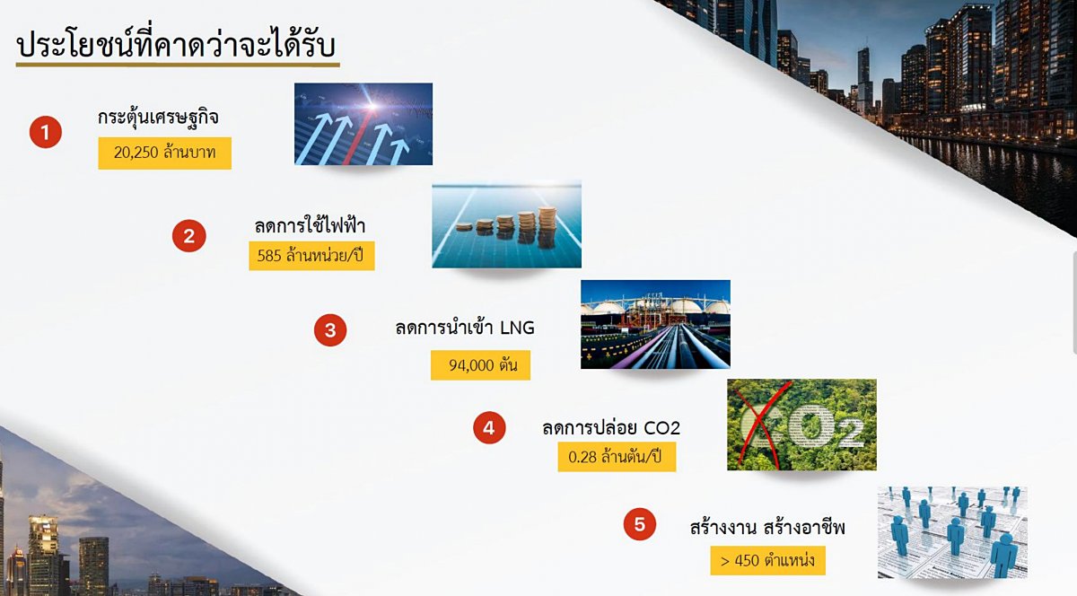 “การที่ภาครัฐออกมาตรการกระตุ้นการติดตั้งผ่านการลดหย่อนภาษีสูงสุด 200,000 บาท เชื่อว่า จะสามารถช่วยกระตุ้นเศรษฐกิจโดยรวมได้มากกว่า 2 หมื่นล้านบาทต่อปี ลดการใช้ไฟฟ้าลงได้ 585 ล้านหน่วยต่อปี ลดการนำเข้า LNG 9.4 หมื่นตันต่อปี ลดการปล่อยคาร์บอน 0.28 ล้านตันต่อปี พร้อมสร้างการจ้างงานได้กว่า 450 ตำแหน่ง ขณะที่แนวโน้มการติดตั้งโซลาร์เซลล์ของภาคประชาชนมีแนวโน้มเพิ่มขึ้นอย่างต่อเนื่อง โดยมีปริมาณการติดตั้งโซลาร์รูฟท็อปเพื่อผลิตไฟฟ้าใช้ภายในครัวเรือนรวมกว่า 800 -1,000 เมกะวัตต์ โดยปัจจัยขับเคลื่อนสำคัญทั้งเรื่องค่าๆฟฟ้าและค่าครองชีพที่เพิ่มสูงขึ้น โดยเฉพาะการมีมาตราการทางภาษีเข้ามาจะช่วยผลักดันให้เกิดการเติบโตได้เพิ่มมากขึ้นอย่างต่อเนื่อง”