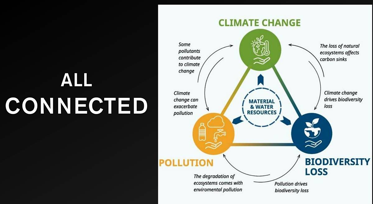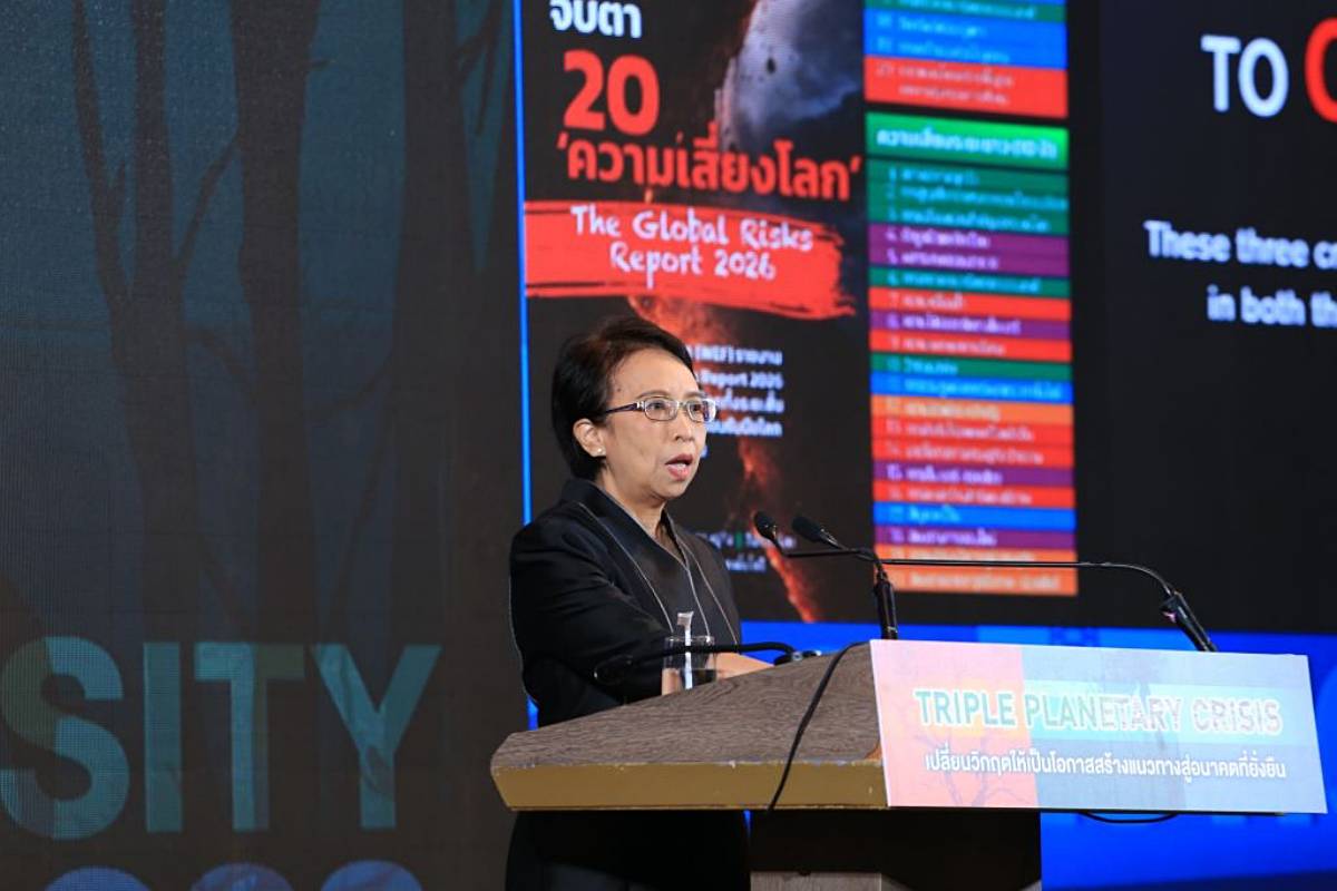 “วิกฤตทั้ง 3 ด้านมีความเชื่อมโยงกันอย่างใกล้ชิด เพราะการเปลี่ยนแปลงของสภาพอากาศ ส่งผลกระทบต่อระบบนิเวศ และเพิ่มความเสี่ยงต่อการสูญเสียความหลากหลายทางชีวภาพ รวมท้ังมีผลต่อความสามารถของธรรมชาติในการดูดซับก๊าซเรือนกระจกได้ลดลง ขณะที่ปัญหามลพิษก็จะซ้ำเติมให้ทั้งสองวิกฤตรุนแรงเพิ่มขึ้นอีก ดังนั้น การแก้ไขปัญหาเหล่านี้ ไม่สามารถดำเนินการแบบแยกส่วนได้ แต่ต้องดำเนินการร่วมกันอย่างบูรณาการ โดยเฉพาะการส่งเสริมแนวทางการพัฒนาที่มุ่งสู่ Nature Positive ที่ให้ความสำคัญในการอนุรักษ์ ฟื้นฟู และใช้ประโยชน์จากทรัพยากรธรรมชาติอย่างยั่งยืน”
