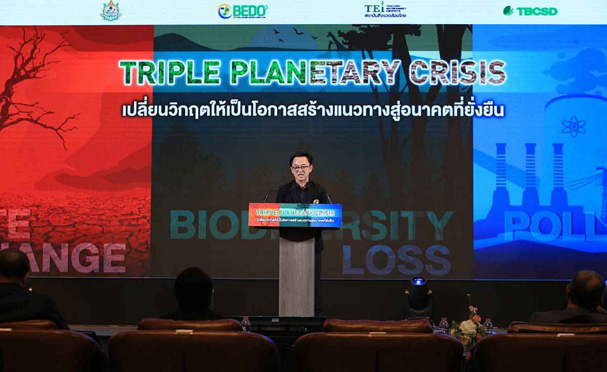 องค์กรธุรกิจเพื่อการพัฒนาอย่างยั่งยืน (TBCSD : Thailand Business Council for Sustainable Development ) ร่วมกับ สถาบันสิ่งแวดล้อมไทย (Thailand Environment Institute หรือ TEI) และ สำนักงานพัฒนาเศรษฐกิจจากฐานชีวภาพ (องค์การมหาชน) (Biodiversity-Based Economy Development Office (Public Organization) หรือ BEDO ร่วมมือจัดงานสัมมนา ‘Triple Planetary Crisis : เปลี่ยนวิกฤตให้เป็นโอกาสสร้างแนวทางสู่อนาคตที่ยั่งยืน’