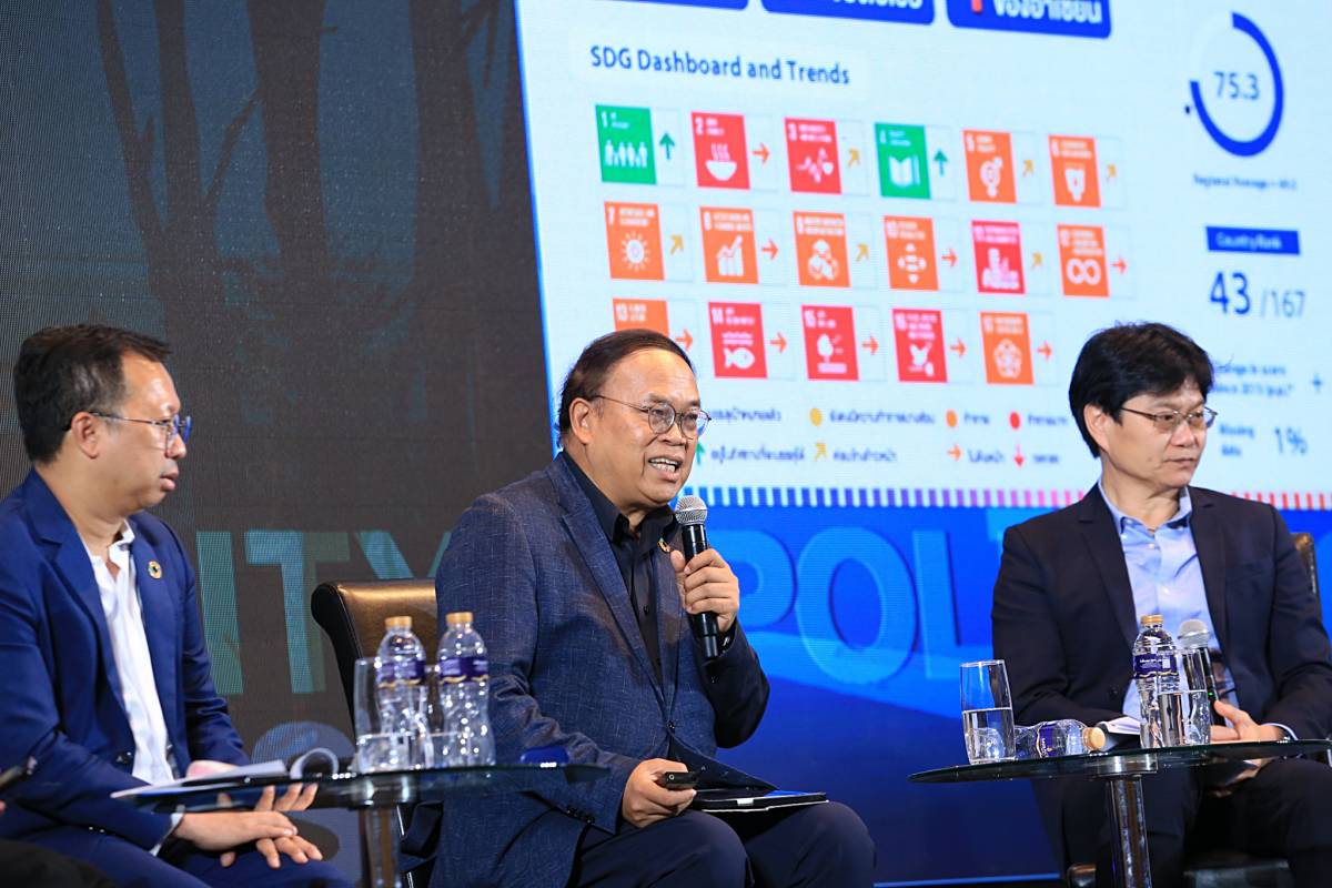 ช่วงเสวนา เรื่อง Triple Planetary Crisis: ร่วมหาทางรอดจาก 3 วิกฤตโลกสู่อนาคตที่ยั่งยืน โดยผู้บริหารระดับสูงจาก 3 หน่วยงานหลักที่มีบทบาทสำคัญในการร่วมเปลี่ยนวิกฤตปัญหาด้านสิ่งแวดล้อมให้เป็นโอกาสสร้างแนวทางสู่อนาคตที่ยั่งยืน ดังนี้